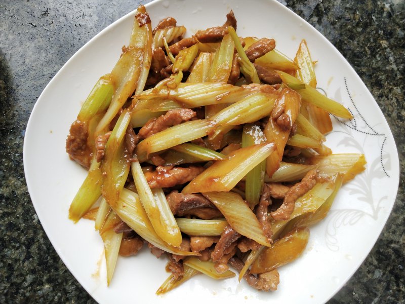 西芹小炒肉看似家常,却暗藏门道。正宗做法讲究肉片滑嫩、西芹爽脆、香气复合。秘诀在于精选带肥的猪前腿肉,薄切腌制;西芹需斜刀改段,快速焯水以保其翠;热锅凉油,先煸香蒜末、豆豉与干椒,再下肉片猛火滑炒,最后投入西芹,沿锅边淋入酱汁,急火翻匀即成。十分功夫,尽在火候与顺序之间。