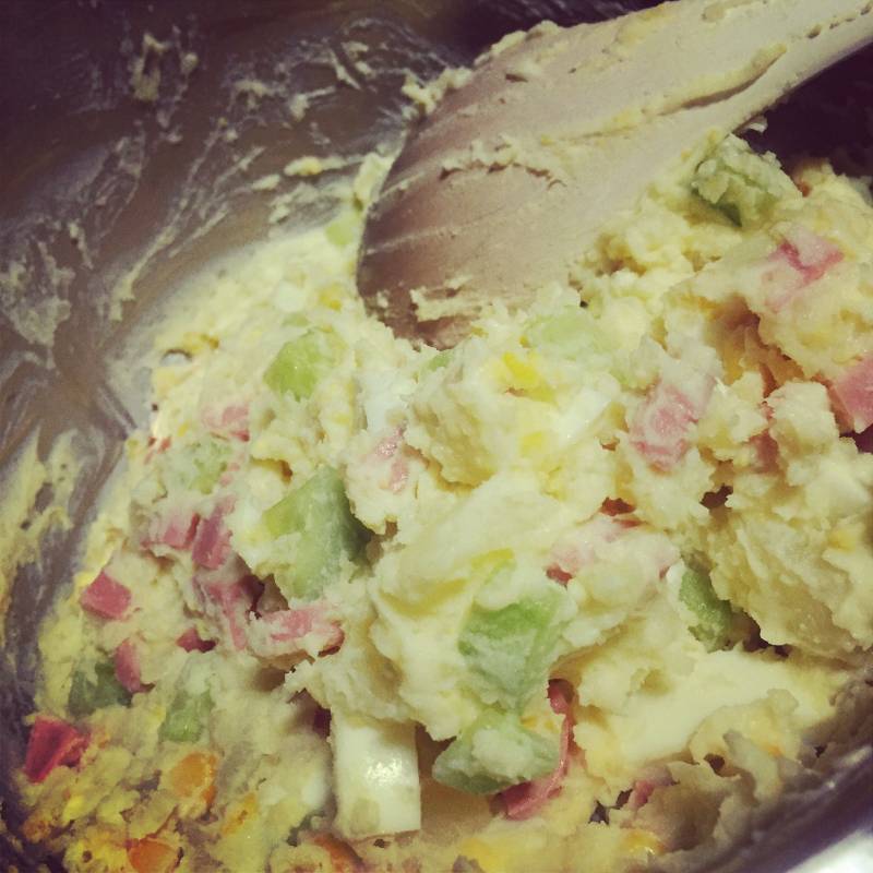 7:土豆泥中放入丘比沙拉酱,均匀搅拌
