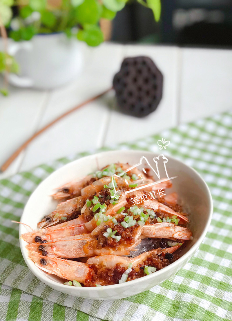 10:蒸好的蒜蓉虾表面撒上葱花,浇上热油即可。