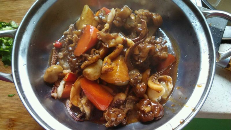 14:酱料汁做好,海鲜锅也已焖熟了。