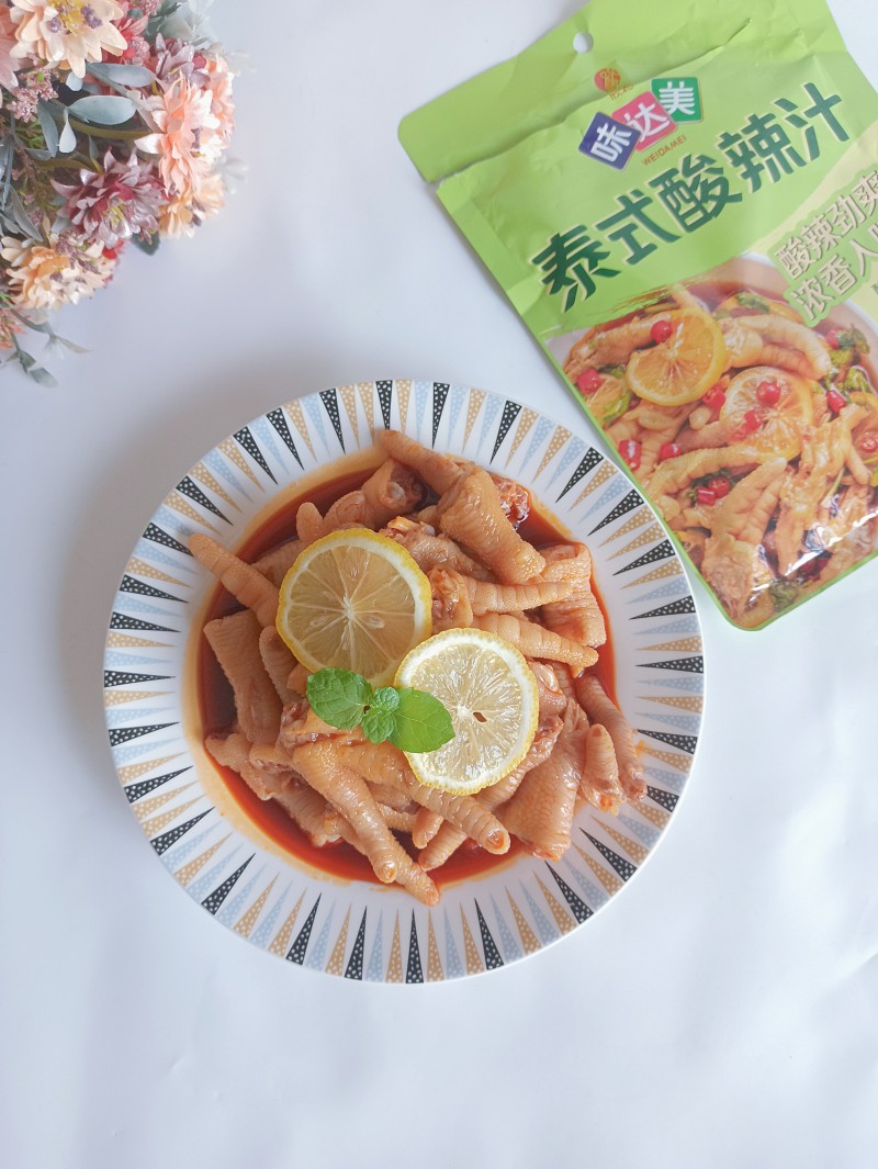 5:鸡爪滤干水,加入泰式酸辣汁。