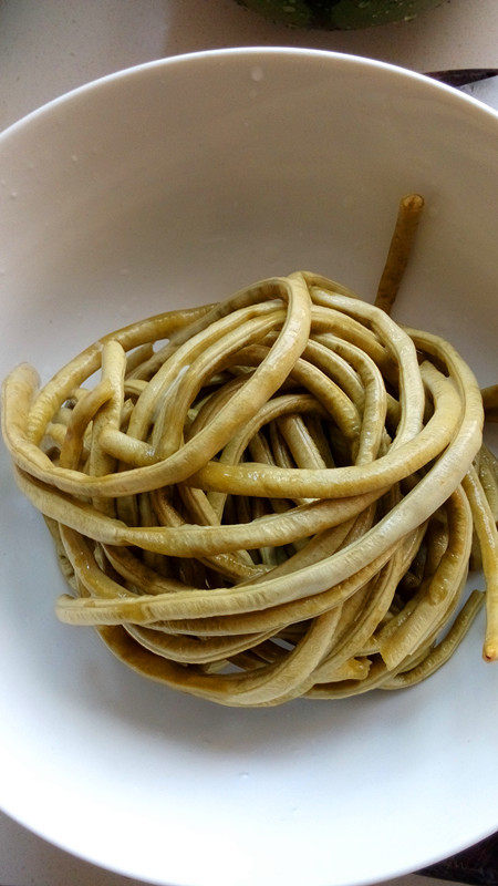 2:浸泡洗净后的豆角控干水分(要尽量控干生水)。