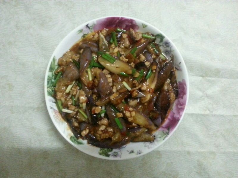 7:加入炒软的茄子,剩下的酱汁,适量盐,继续翻炒。