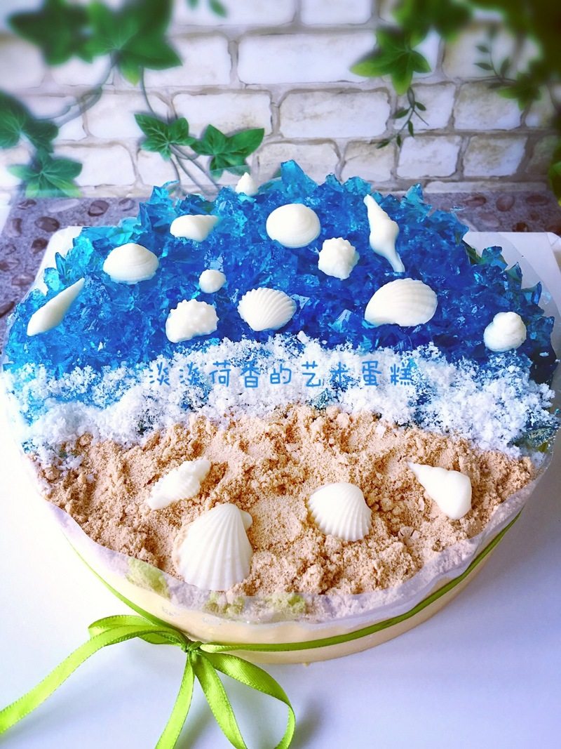 15:白巧克力做成贝壳,木糠粉做成沙滩,椰蓉做浪花即可