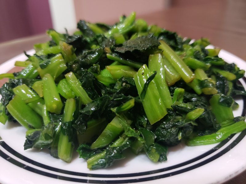 2:炒锅烧开水,放入雪里红烫一下,又叫过水,是为了过掉一些青涩味。两分钟就赶紧捞出来。