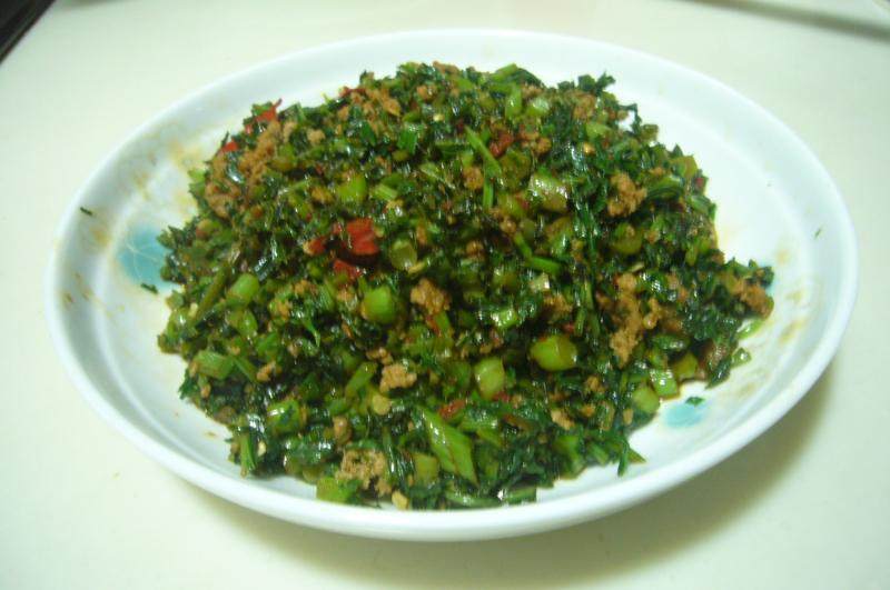 7:倒入雪菜煸炒,放糖盐继续至熟.(雪菜虽是制过的,但没盐味)