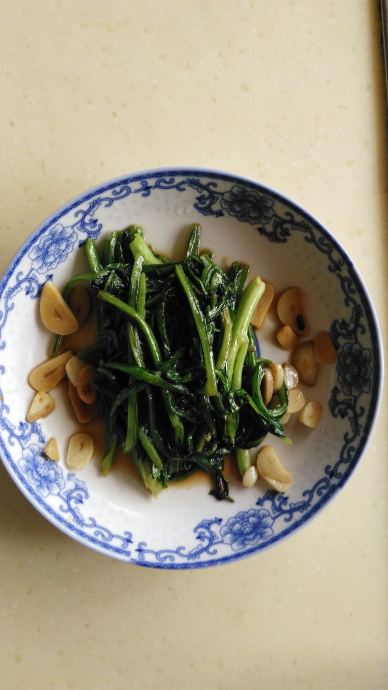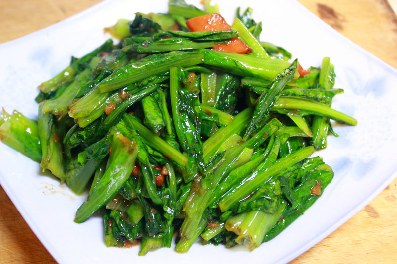 2:锅中放入油,油开后将蒜片清炒,然后放入油买菜,依次放入盐少许、酱油少许、十三香少许,快速翻炒即可。