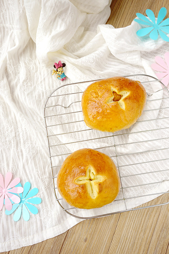 15:在表面割十字刀口,深可见馅,表面再刷上蛋液,