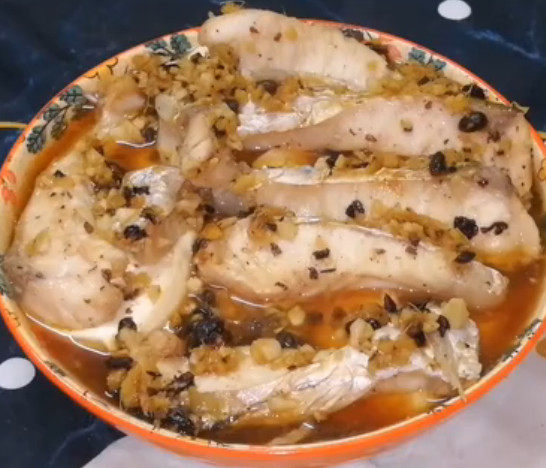鳕鱼下巴850g;蒜蓉豆豉酱1大匙;生抽2茶匙;糖1/2茶匙;