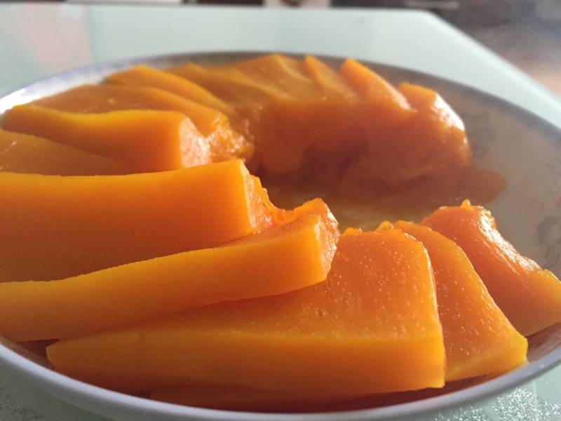 南瓜蒸制的时间请根据南瓜片的厚度适当调整。