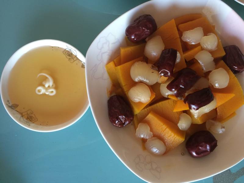 南瓜半块;鲜桂圆五颗;