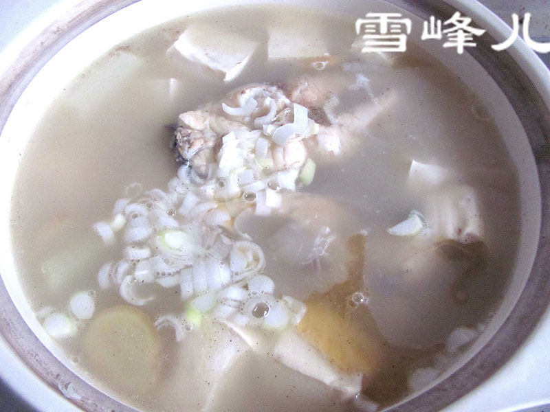 5:大火烧开,改小火炖约30分钟,汤变白加入豆腐。