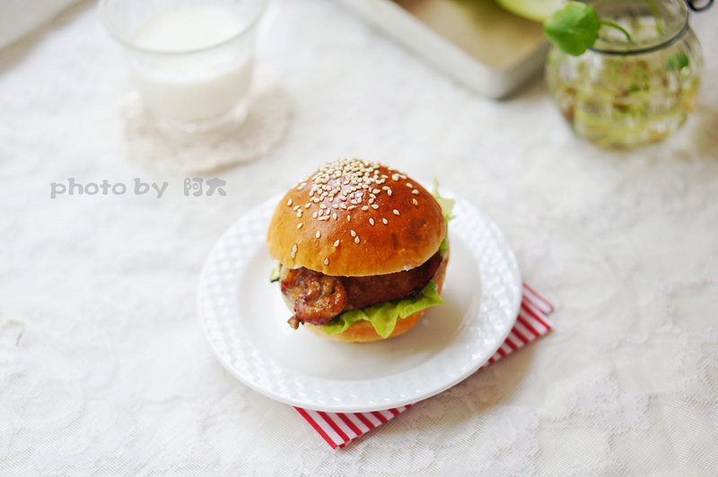 盐2.5克(汉堡);细砂糖2茶匙(肉);泰式甜辣酱1汤匙(肉);甜椒粉1茶匙(肉);辣椒粉适量(肉);黑胡椒碎适量(肉);糖20克(汉堡);酵母2.5克(汉堡);