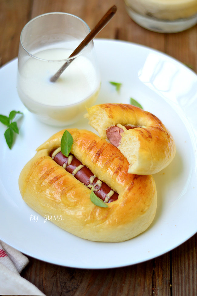 高筋面粉280g;牛奶100g;火腿肠7个;鸡蛋1个;