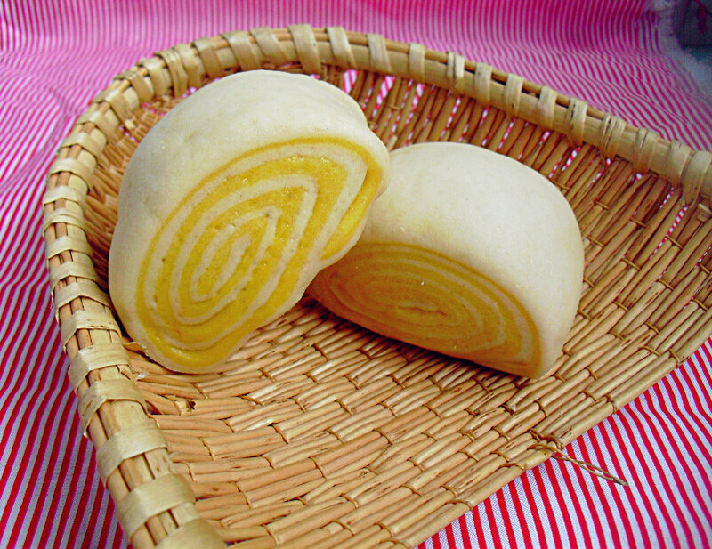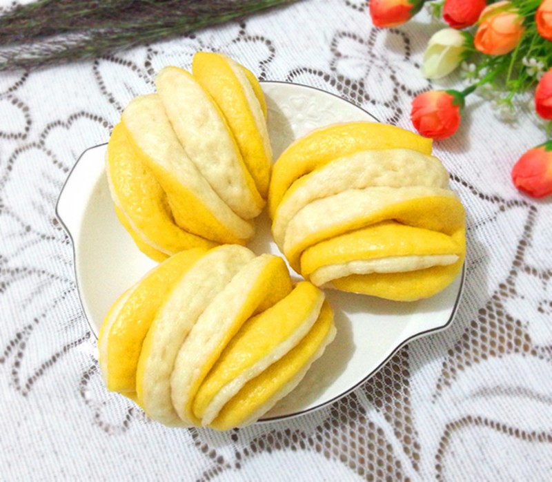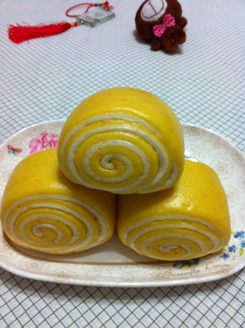 面粉500g;酵母5g;水120g;南瓜泥200g;