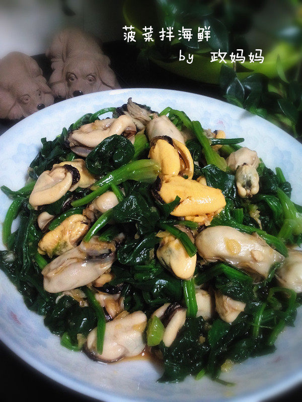 菠菜250克;海虹肉100克;海蛎子肉100克;