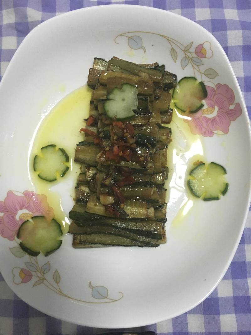 4:锅中放食用油烧热,下入黄瓜煎至黄瓜软透。