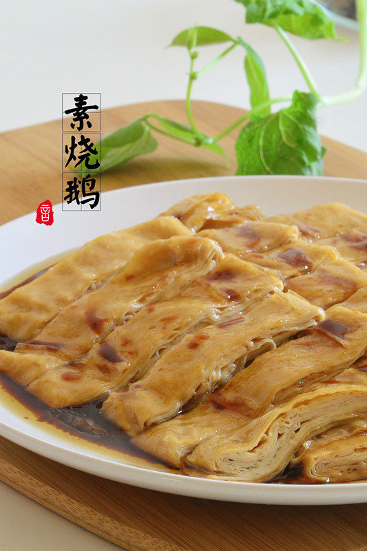 12:将1汤匙酱油,1汤匙糖,和麻油放在碗中搅拌均匀,淋在素烧鹅上即可,也可以光淋麻油,不用酱油和糖。