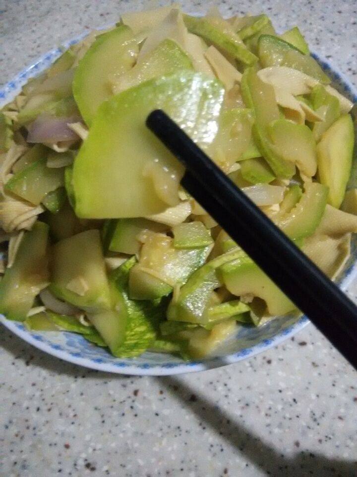 角瓜1个;干豆腐200克;洋葱半个的一半;