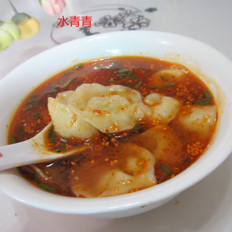 6:碗中滴几滴麻油,云吞和开水盛入碗中,开动吧