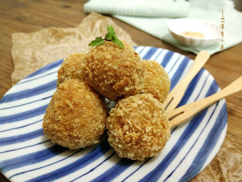 芋头适量;黄咖喱适量(或块状咖喱);椰浆粉适量(或椰浆);猪油适量(或色拉油);牛肉适量;洋葱适量;生姜适量;料酒适量;鸡蛋适量;玉米淀粉适量;面包糠适量;