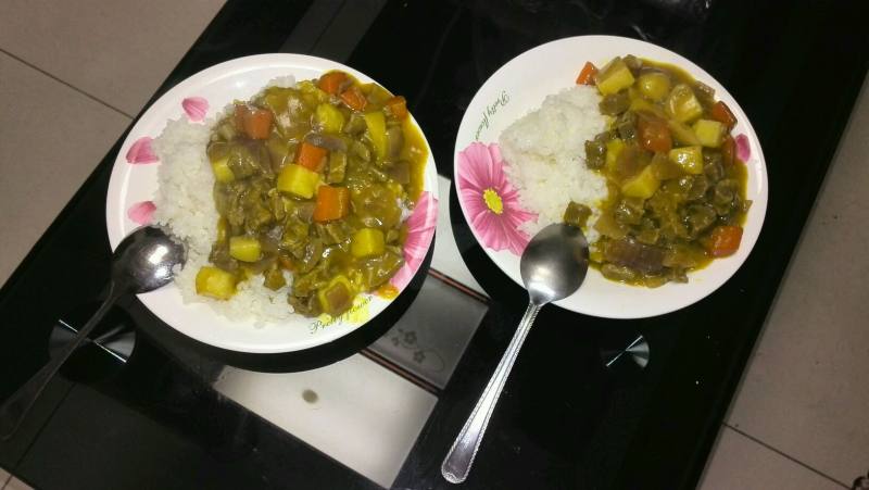 1:牛肉洗净切麻将小点的块,胡萝卜洋葱土豆切滚刀块,我用的是有咖喱,大约两三勺