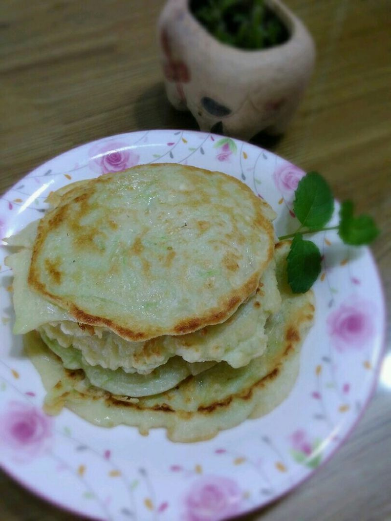 7:三翻四烙,清香爽脆的黄瓜鸡蛋饼就烙好了。