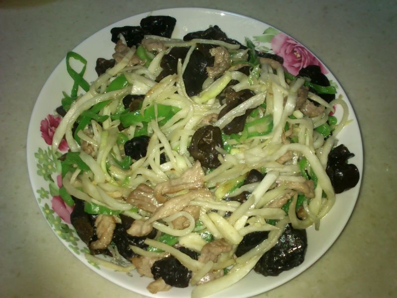 2:锅烧热,倒油,下肉丝滑油后盛出。