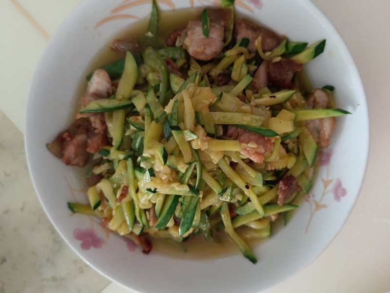 杏鲍菇1个;胡萝卜2个;青蒜适量;木耳(泡发好的)适量;瘦肉丝适量;