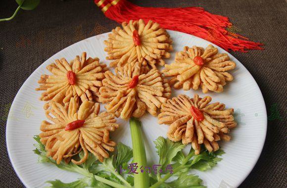 8:面条定型时,抽去油纸,继续炸,并不时取出,翻面