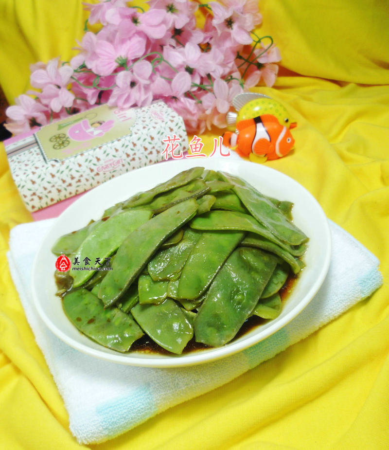 8:再倒入扁豆角,翻炒均匀放入食盐、鸡精调味即可。