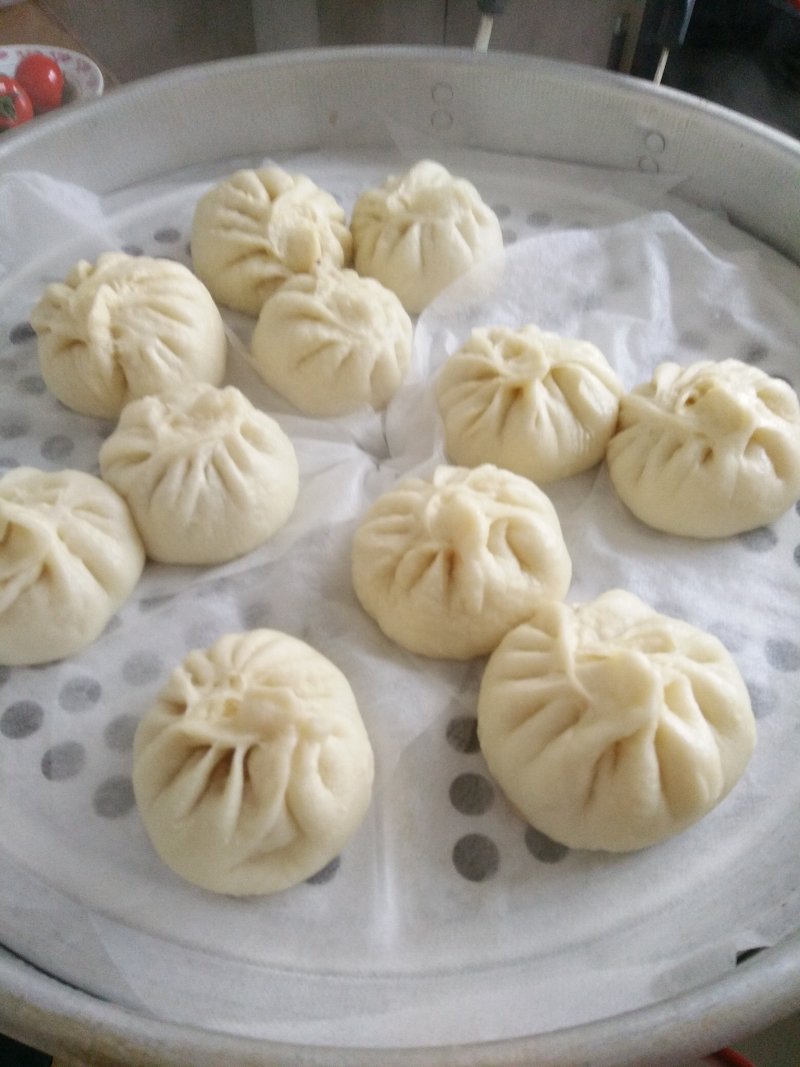 6:包好馅,放置20分钟左右,等待2次发酵,就可以上锅蒸了。我是用热水蒸的。
