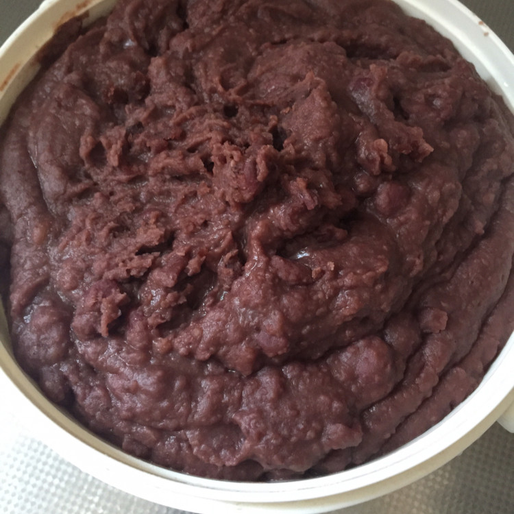 3:用料理机搅拌成浆!也可以煮熟红豆之后不用料理机打碎,直接用勺子压一压红豆也行!