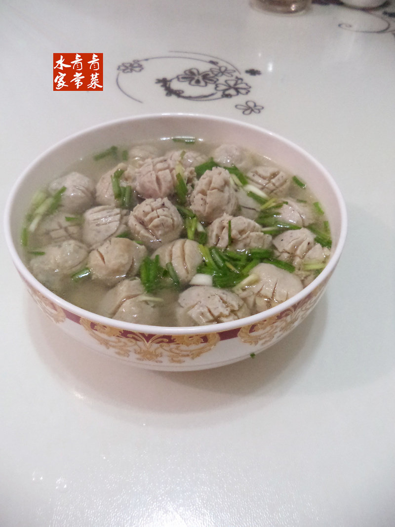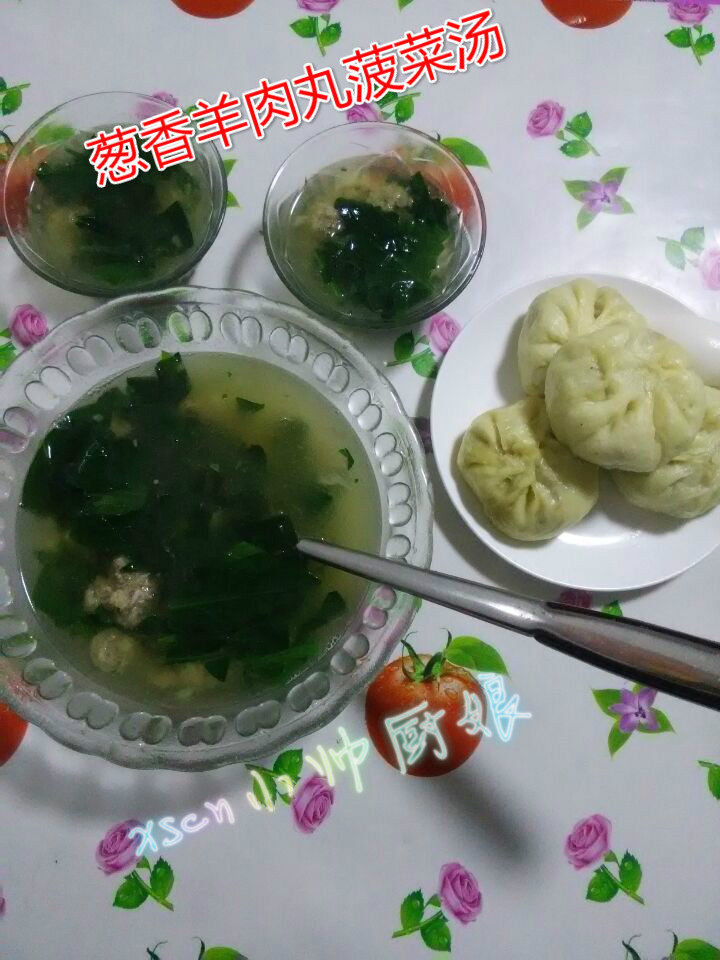 1:需要用的食材,香葱洗净,切小段。(肉丸是买的现成的)