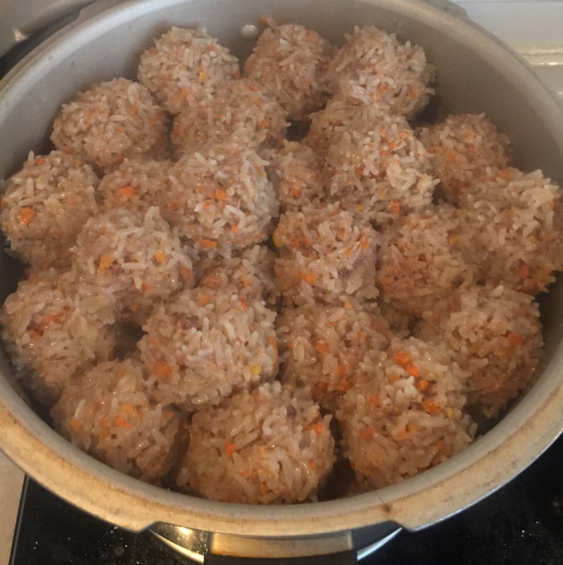 1:先将糯米泡发到用指甲掐得断,然后沥干水分,待用。肉绞好,胡萝卜切碎,加上盐,味精,蚝油,胡椒粉,酱油一起放到肉里拌匀