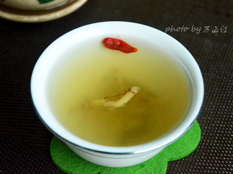 7:煮好的消炎去火的鱼腥草茶,效果很不错的哦。点缀了一粒枸杞为了拍照时颜色好看。