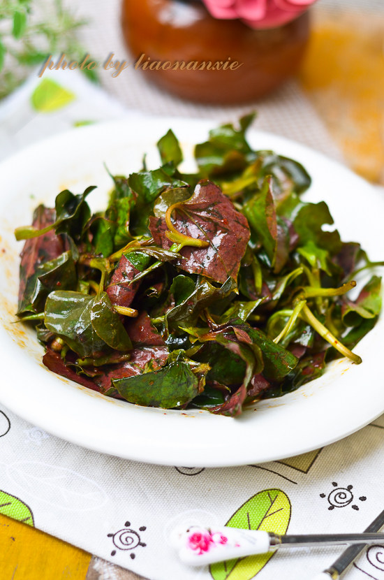 鱼腥草不用烫,因为一烫就没色彩了,洗净晾一下配好调味品拌匀就可以了。