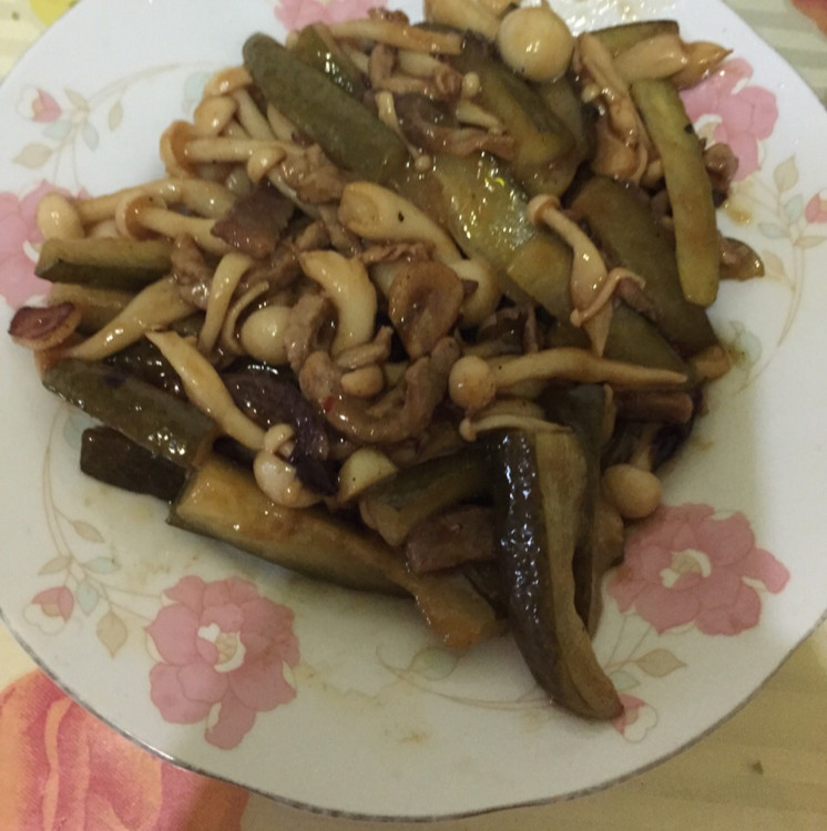 7:加入口蘑,翻炒,口蘑会出水体积缩小,我的口蘑切的太薄,缩的厉害,成品时显得比黄瓜片小很多( ̄▽ ̄)