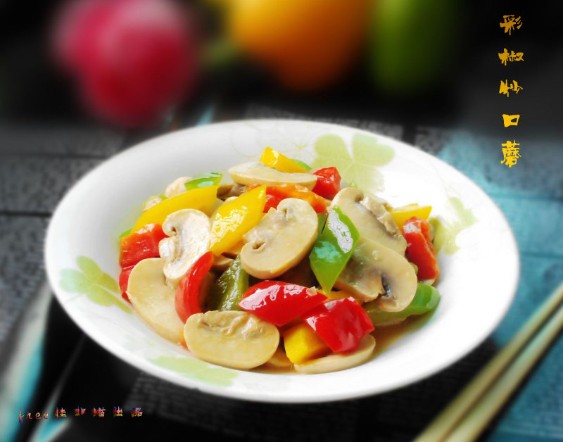 口蘑8只;青椒1/4个;黄椒1/4个;红椒1/4个;