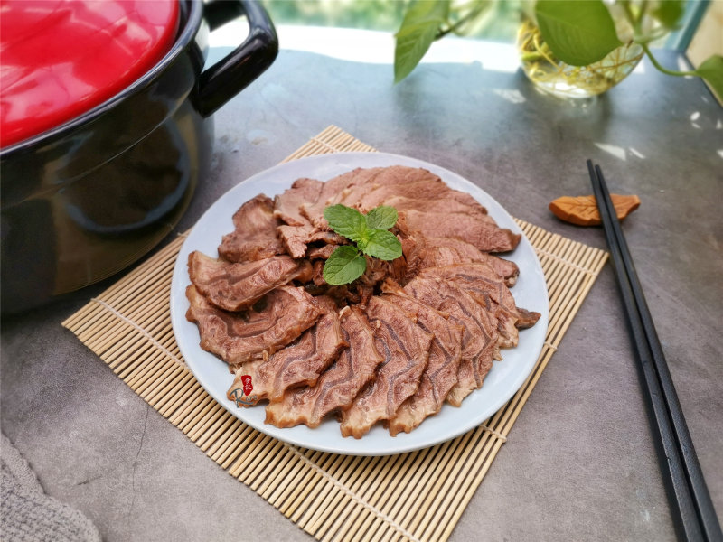 7:逆着纹理切成薄片,摆盘上桌,好看又好吃。