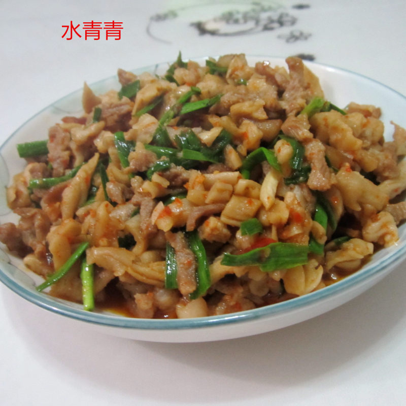这个菜最主要是把肉要提前炒香,只要变色就行,不行炒太久,炒久了肉就会变老了,口感会变差,盐都是最后一起放的。