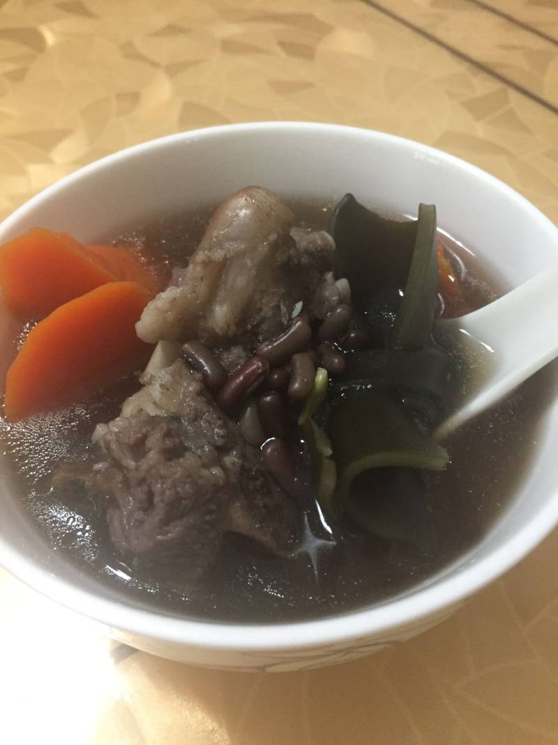 蜜枣2颗;赤小豆1把;胡萝卜1个;黑豆1把;海带节10个;猪骨半斤;