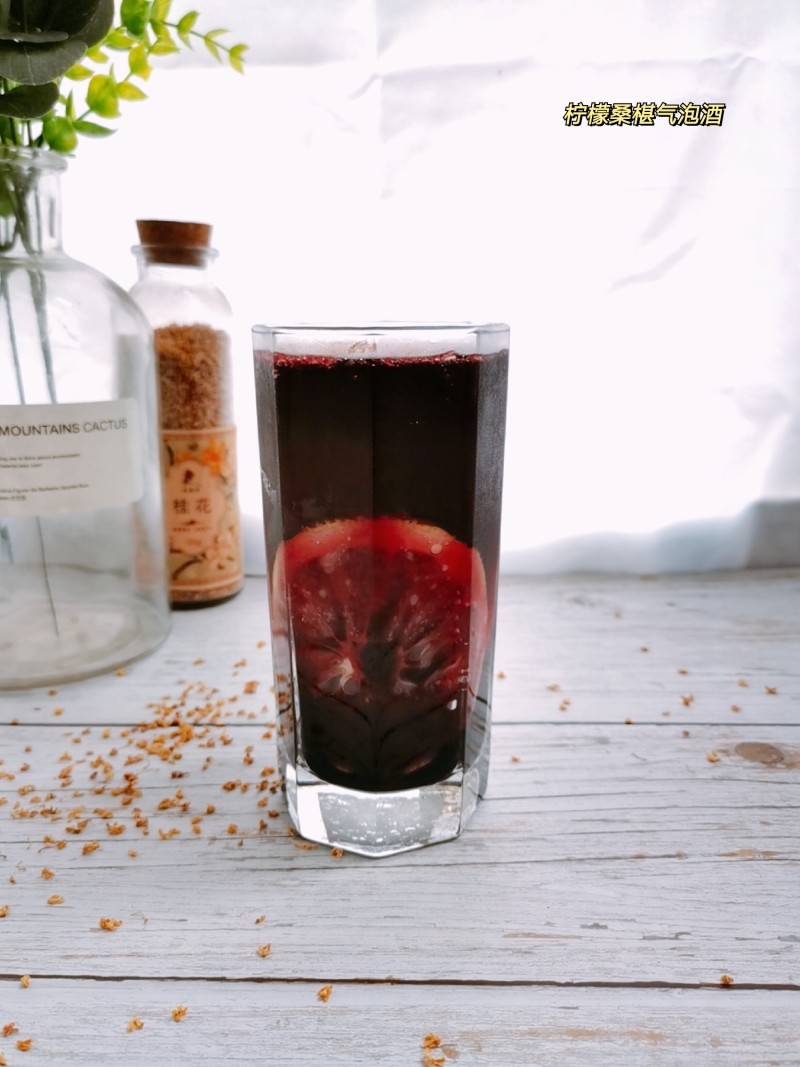 柠檬1/2个;桑葚酒50g;气泡水200g;