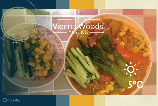 4:烤好后搭配蔬菜和米饭淋上咖喱