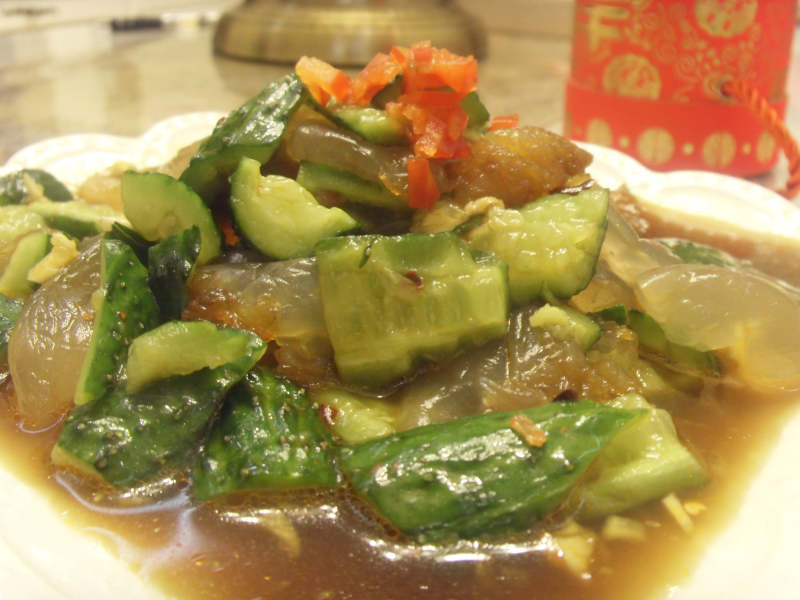 海蜇头适量;黄瓜适量;