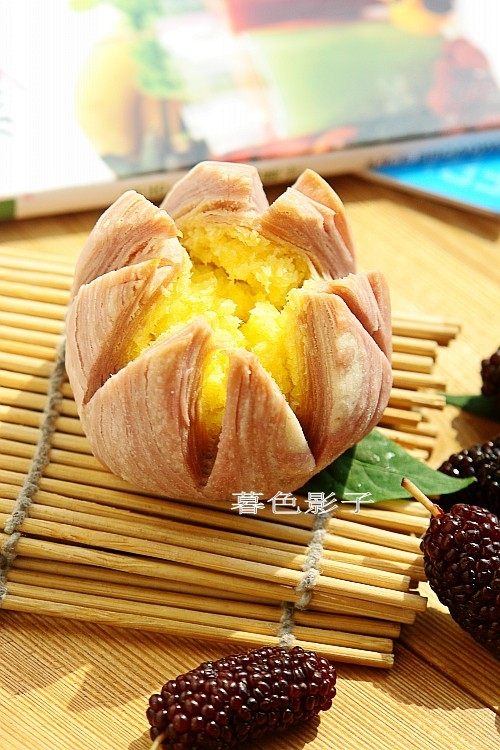 4:面粉中放入桑葚汁.酵母和少许白糖,搅拌均匀,揉成面团,醒发两倍大。