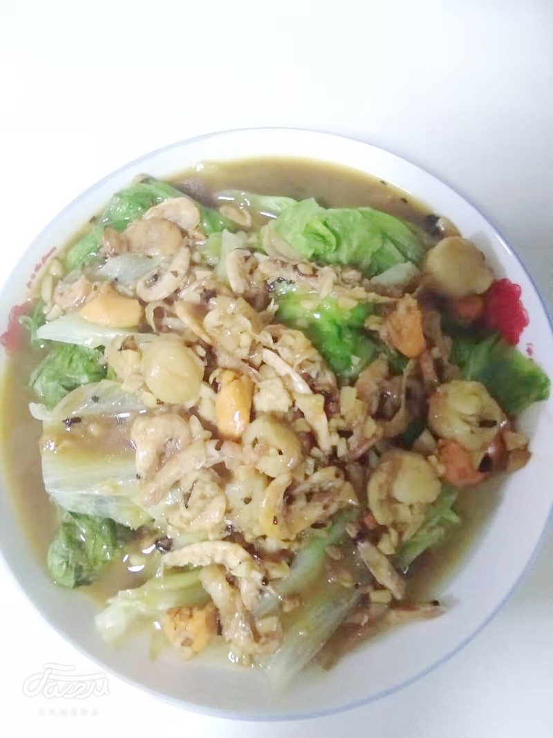 生菜300g;鸳鸯贝100g;虾仁50g;