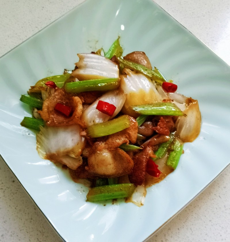 五花肉150g;西芹2根;白菜帮3颗;