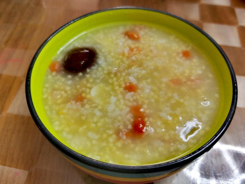 大米100克;大黄米25克;燕麦米30克;大枣4个;黑米30克;薏米25克;