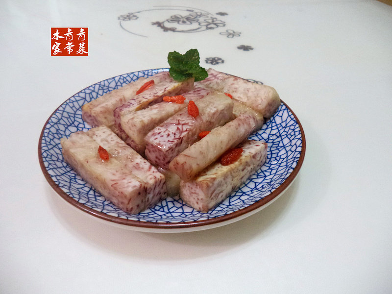 5:芋艿去皮洗干净切片,加适量的盐拌匀腌制片刻